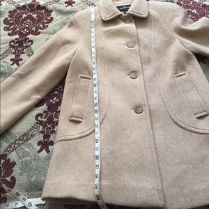 New with tag, London Fog Oatmeal wool blend button up coat. Seam pockets, shell: 80% wool 20% nylon, lining: 100% polyester. Size 8P