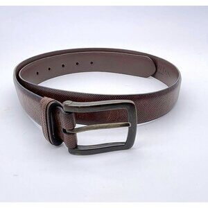 London Fog Pin Dot Feather Edge Dress Belt Men's Size 36 Brown Leather