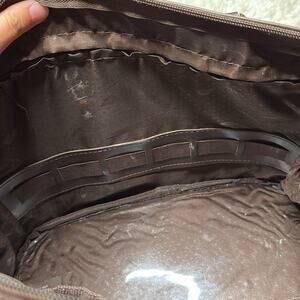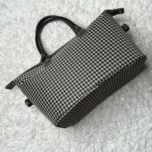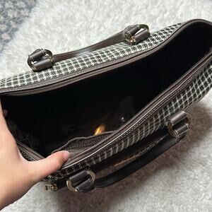 London Fog Plaid Duffle Bag Stylish Houndstooth Handbag Clear Liner Gold Details