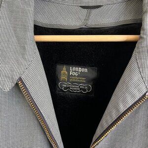London Fog Plaid Pile Fleece Lined Bomber Jacket Gray Size M Dark Academia Retro