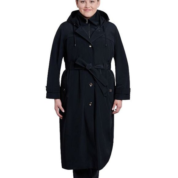 London Fog Plus Size London Fog Hood Inner-Bib Maxi Trench Coat - 3X - Black - NWT
