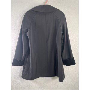 London Fog Rain Coat Womens Sz L Black Mid Length All Weather Velvet Cuff Trench
