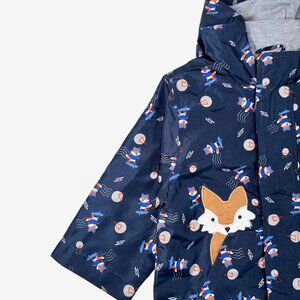 Charming rain jacket with a playful skating-fox print. Features a hood, soft lining for comfort, and a full front zipper for easy on and off. Lightweight yet protective—perfect for drizzly adventures.