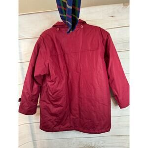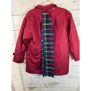 London Fog Red Full Zip & Button Up Coat With Plaid Scarf Size 6