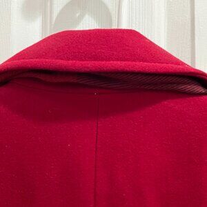 London Fog Red Wool Coat with Attached Plaid Fringe Scarf Women's Size Med EUC
