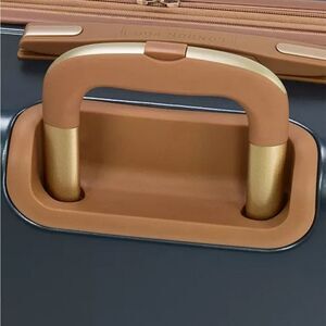 The London Fog Regent Collection is made in a durable polycarbonate alloy hard side construction with a leather inlay trim. Each spinner has 8 recessed spinner wheels that make traveling smooth. Interior has zippered lid compartment, mesh pocket and mesh packing cradle to keep your belongings organized. There are TPR (thermoplastic rubber) cushion grips on top and side carry handles and a bottom grip handle on all sizes. Spinners expand 2" for additional packing capacity. Industrial zippers are self repairing.