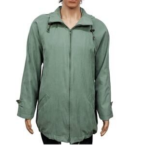 London Fog Removable Hood Windbreaker Trench Jacket Zip Up XL Sage Green