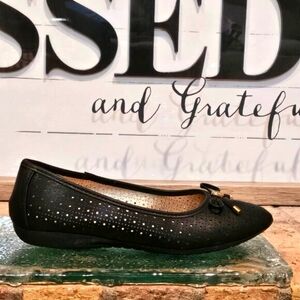 London Fog S BABETTE Perforated Flat Round Toe Slip-On Bow Black Sz 8.5 Wide