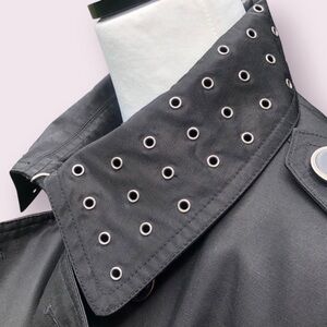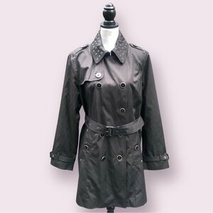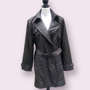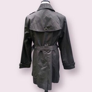 London Fog Short Trenchcoat Women’s Large Black Double Breasted Grommet Collar