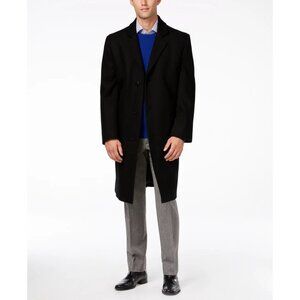 London Fog Signature Black Overcoat 38R Wool Blend Classic Fit Top Coat New
