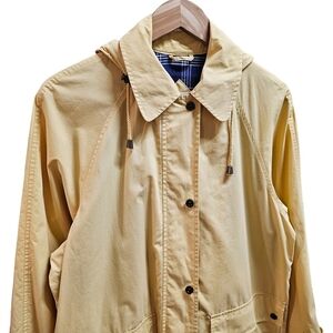 London Fog Soft Yellow Trench Coat With Detachable Hood Size Medium Pockets
