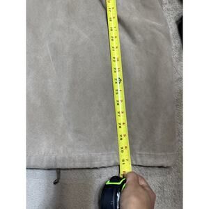 The London Fog Faux Suede Jacket in Women's XL is a stylish and classic outerwear piece perfect for outdoor activities. Made of polyester with a faux suede lining, this tan jacket features an elastic waist and oversized fit for a trendy look. The long sleeves, full zip closure, and inner pockets add practicality to this London-themed jacket, making it a versatile and chic addition to any wardrobe.