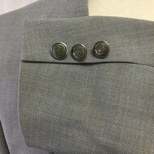 This London Fog Suit Jacket Blazer Sports Coat in size 40R is a must-have for stylish men. Designed in a solid gray pattern, it comes with 5 pockets. Material is unknown as no fabric tag is provided.