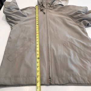 London Fog Sz M Petite Full Zip Hooded Jacket Coat Lined Drawstring Waist Beige.