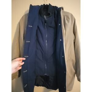 London Fog Tan Full Zip Button Front Hoodie Outdoor Winter Jacket Womans Size 10