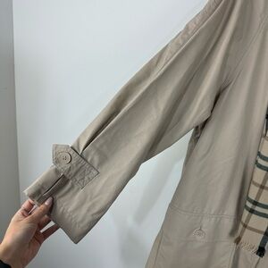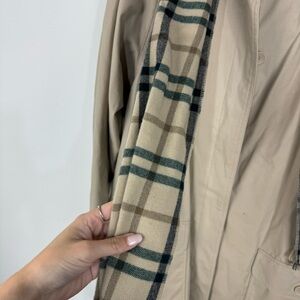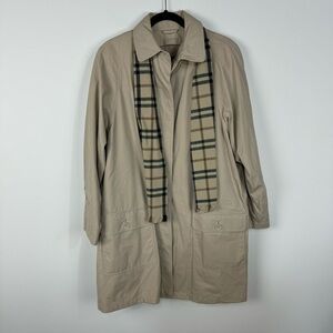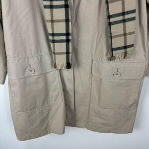 London Fog Tan Khaki Trench Pea Coat Detective With Plaid Scarf Neutral Winter