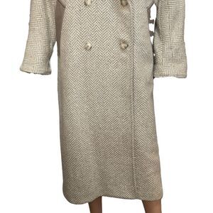 London Fog Tempo Europa Vintage Pure Wool Leather Collar Trench Coat Size 12
