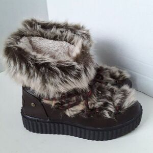 brand new, no box. London Fog Thana women winter faux fur boot size 6M. Brown vegan leather with faux fur trim and Sherpa lining. Lace up. pet and smoke free home.