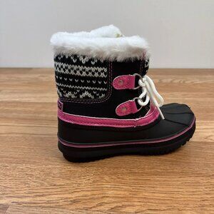 London Fog Toddler Girls Lil Tottenham Snow Boots Size 10 Black Pink Winter NEW