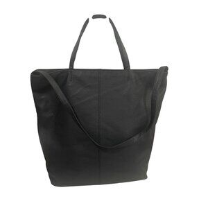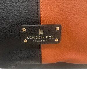 London Fog Tote Bag Black Brown Vegan Leather Shoulder Purse Work Carryall