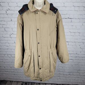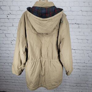 London Fog Towne Tan Removable Hood Plaid Lined Full Zip Coat Size Large L