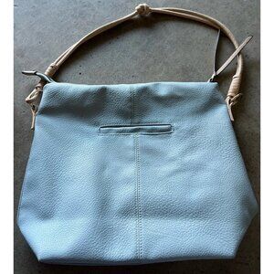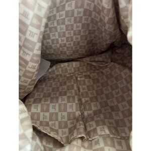 London Fog Travel Bag Houndstooth Brwn Barrel Duffle Leather Light Blue Bag