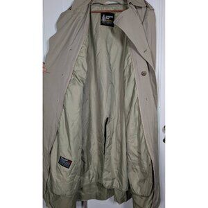 London Fog Trench Coat Men's Sz 42 Reg Tan Khaki Double Breasted Zip Liner Belt