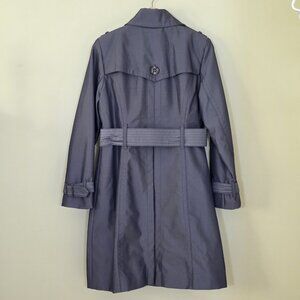 London Fog Trench Coat Womens PS Gray Metallic Pockets Belt Buttons Detach Liner
