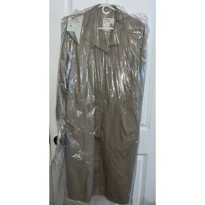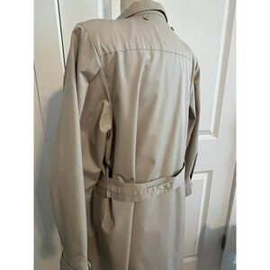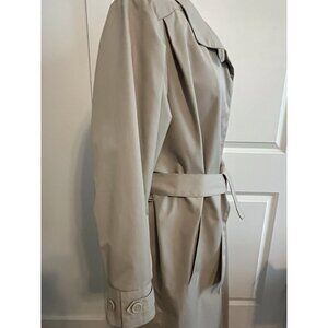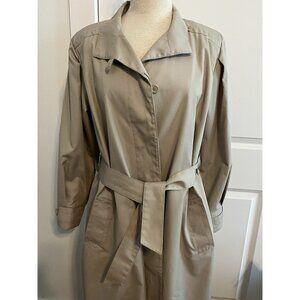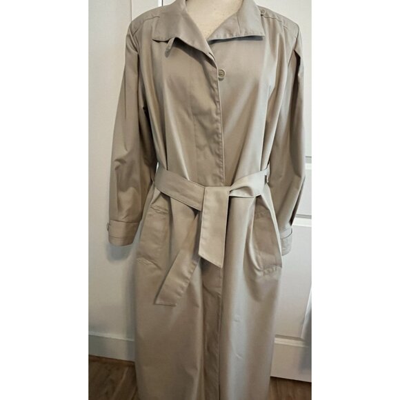 London Fog Trench Coat Women's Sz 14 Khaki Tan Hooded Long Mid Calf Vintage