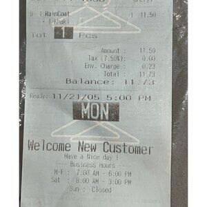 Has not been worn since it came from the cleaners in 2005 / See receipt attached