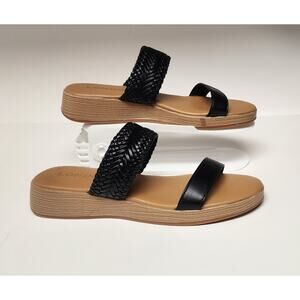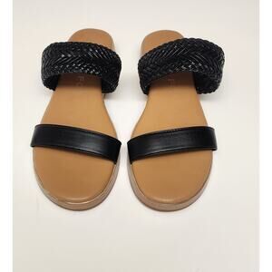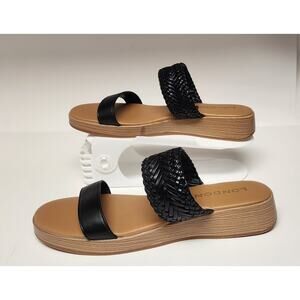 London Fog Trixey Woven Traps Platform Faux Leather Black Sandals Shoes Size 8.5