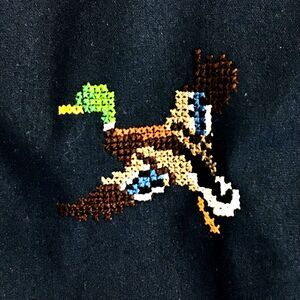* CUSTOM Cross Stitched Mallard Duck on chest.