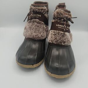 London Fog Willette duck boots in dark brown with faux fur trim women's size 8