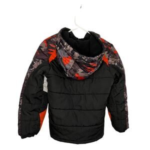 London Fog Winter Puffer Hooded Jacket Youth Boys 10-12 Black with Graphic Print