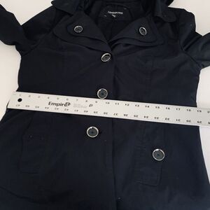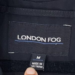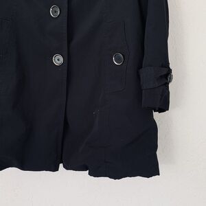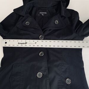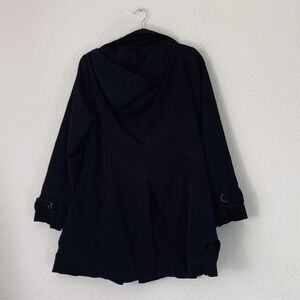 London Fog Women M Black Trench Coat Button Front Hooded Classic Chic Travel