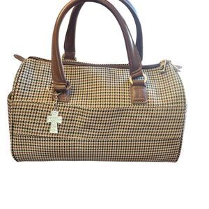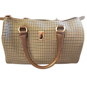 London Fog Women Oxford Travel Satchel Luggage Hand Bag Brown Houndstooth #8100.