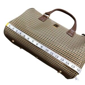 London Fog Women Oxford Travel Satchel Luggage Hand Bag Brown Houndstooth #8100
