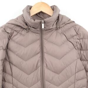 London Fog Women's Lightweight Packable Down Filled Hooded Jacket Taupe Sz S