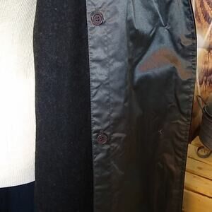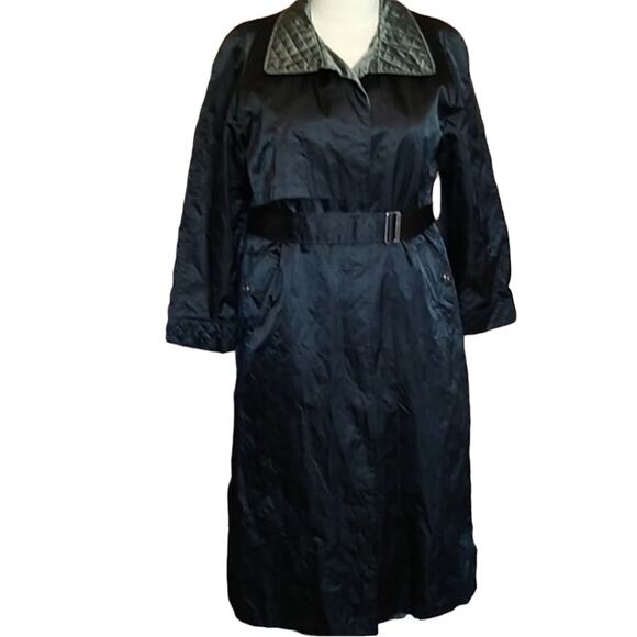 London Fog Black & Grey Satin Lined Belted Trench Coat Size 12