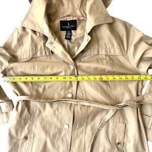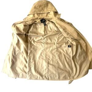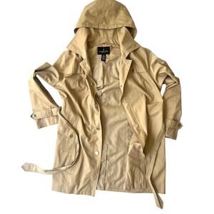 London Fog Women’s XL Hooded Trench / Raincoat – Classic Khaki, Belted & Lined