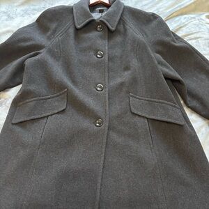 Classic London Fog wool blend coat in timeless gray. A versatile outerwear piece designed for both warmth and sophistication.