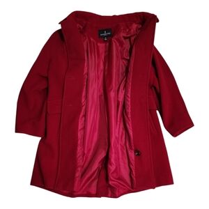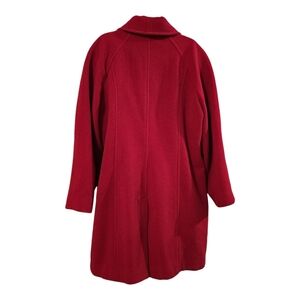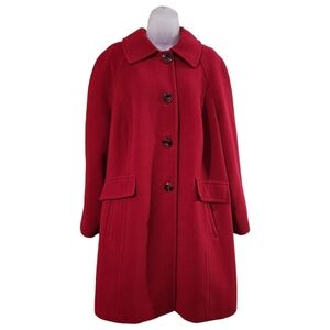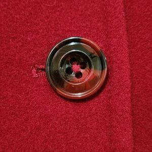 In excellent pre-owned condition. There is a small pulled thread at the bottom of the coat. There are also small black marks that are not very noticeable. They appear to be part of the wool and might not actually be damage. (See photos)