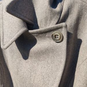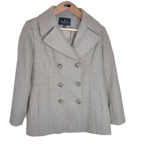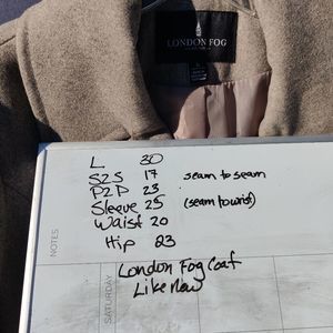 London Fog Wool Pea Coat Double Breast Notch Collar Sz L in Oatmeal Tan