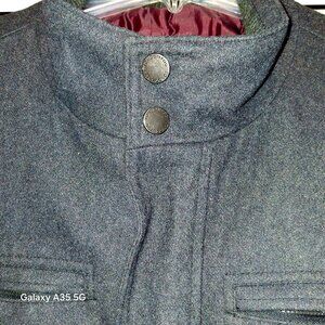 London Fog XL Men's Dark Gray Full-Zip Wool-Blend Bomber Jacket With Stand Colla