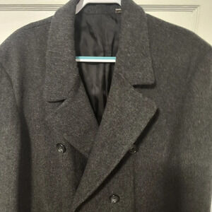London Fog double breasted charcoal grey wool coat men 42L