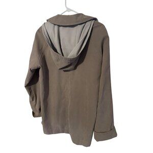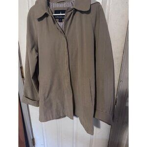 Very nice condition London Fog tan hooded jacket size L slight wear due to normal use see photos