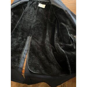 London Fog navy blue lined rain trench coat size 40 Reg. Five buttons in front. Lining is zippered and black. Front side pockets. Each sleeve has a button. Measures approximately 40” from shoulder to hem. Good pre-owned condition.