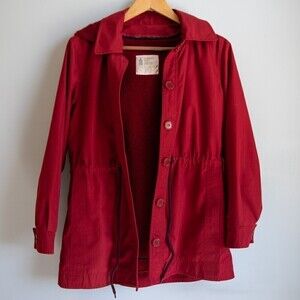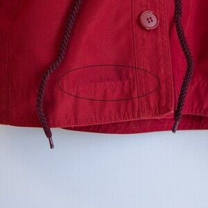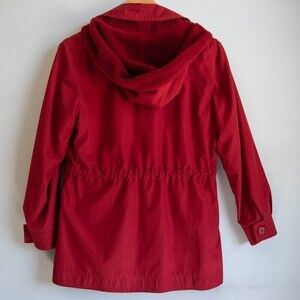 *Small discoloration by bottom front hem and it is missing two of the buttons that hold hood. See pictures for details.
