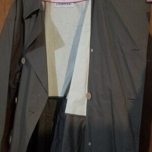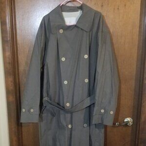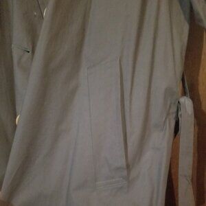 The outside has 2 hip pockets, buttons to adjust the sleeve cuff sizes, a belt, and closes snugly with large beige buttons. The inside also has small clear buttons if you live somewhere cold enough to attach a second jacket inside. I do not have an inner jacket that goes with this trench coat. Does have 2 spare buttons.