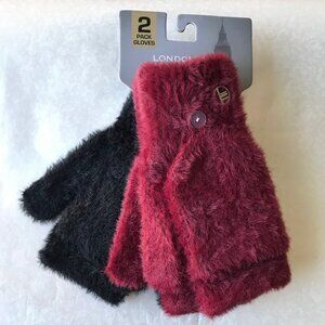 London Fog women O/S winter Gloves Black & Red 2 Pack NWT